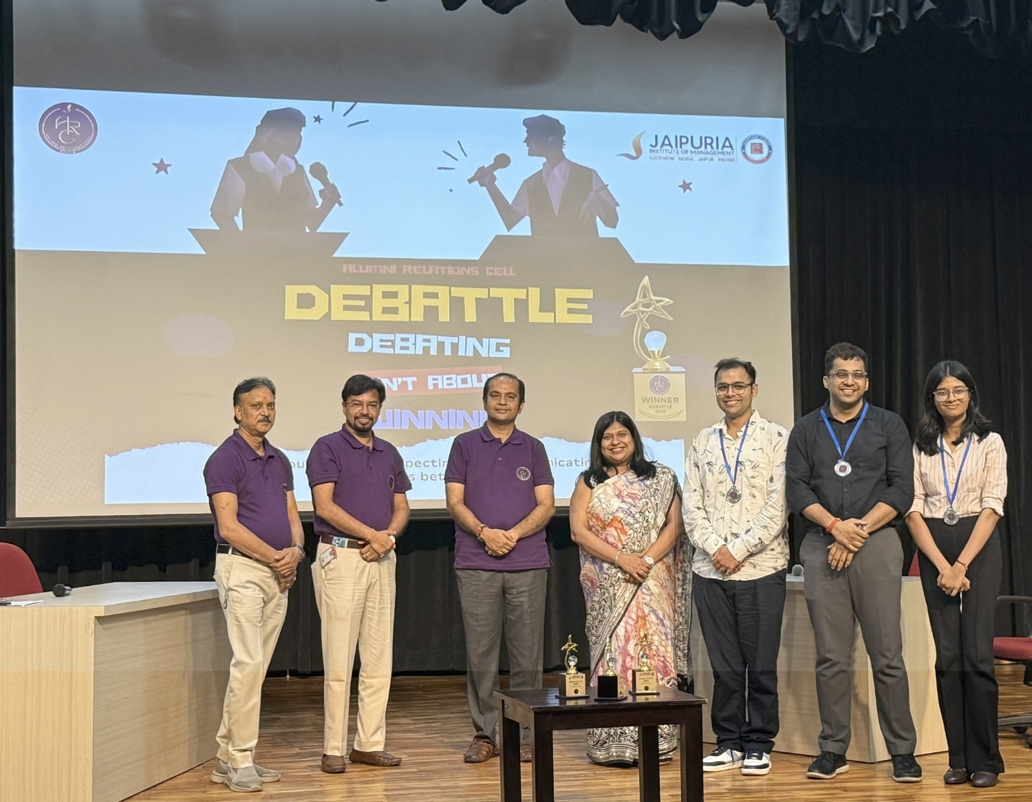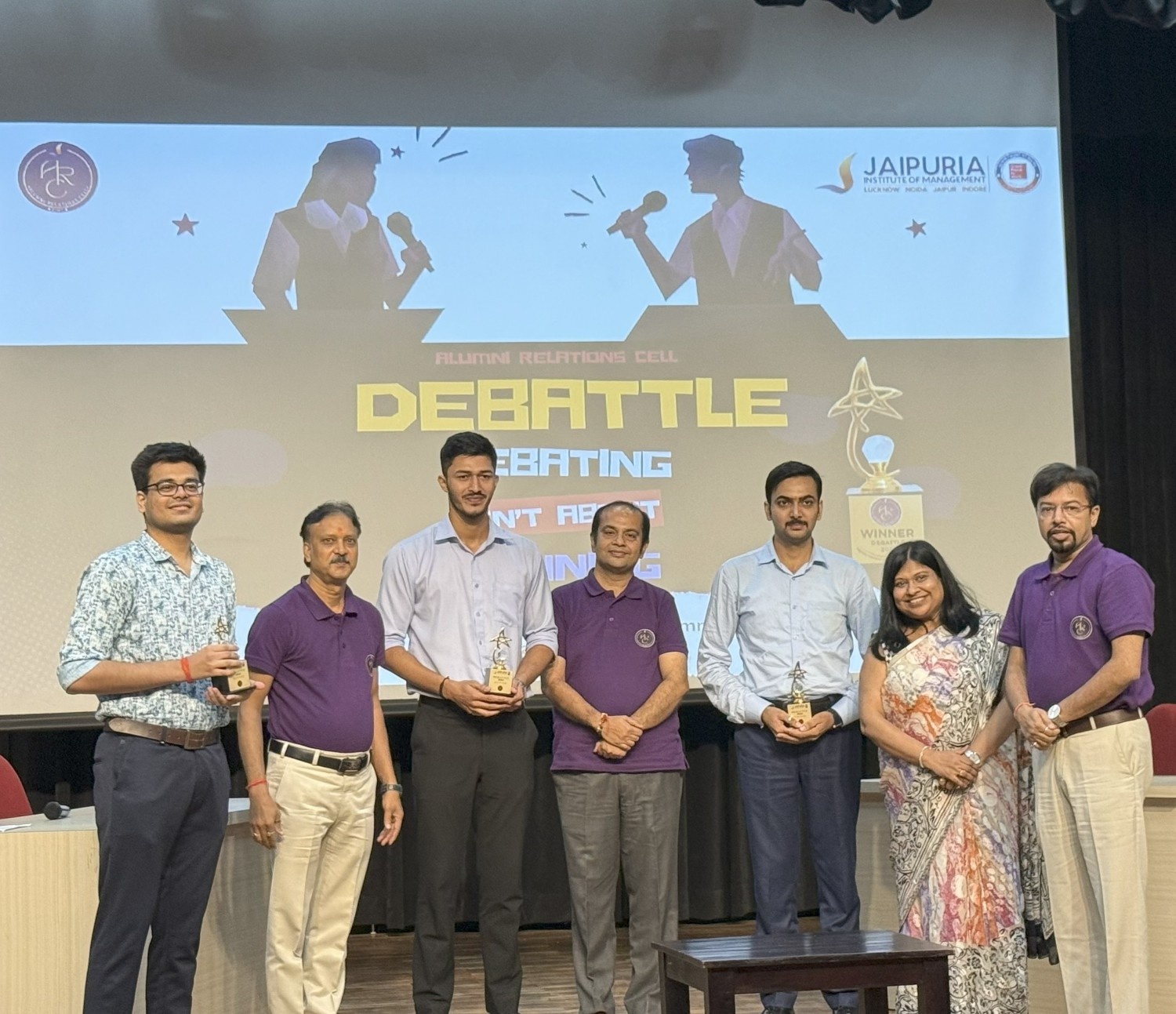 On 22nd September 2025, the Alumni Relations Committee (ARC) of Jaipuria Institute of Management, Lucknow, successfully organized the event DEBATTLE – Battle of Words, Clash of Minds . The event witnessed six energetic teams engaging in powerful debates across three thought-provoking topics, presenting strong arguments from both for and against perspectives.