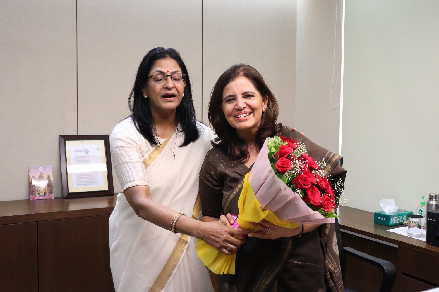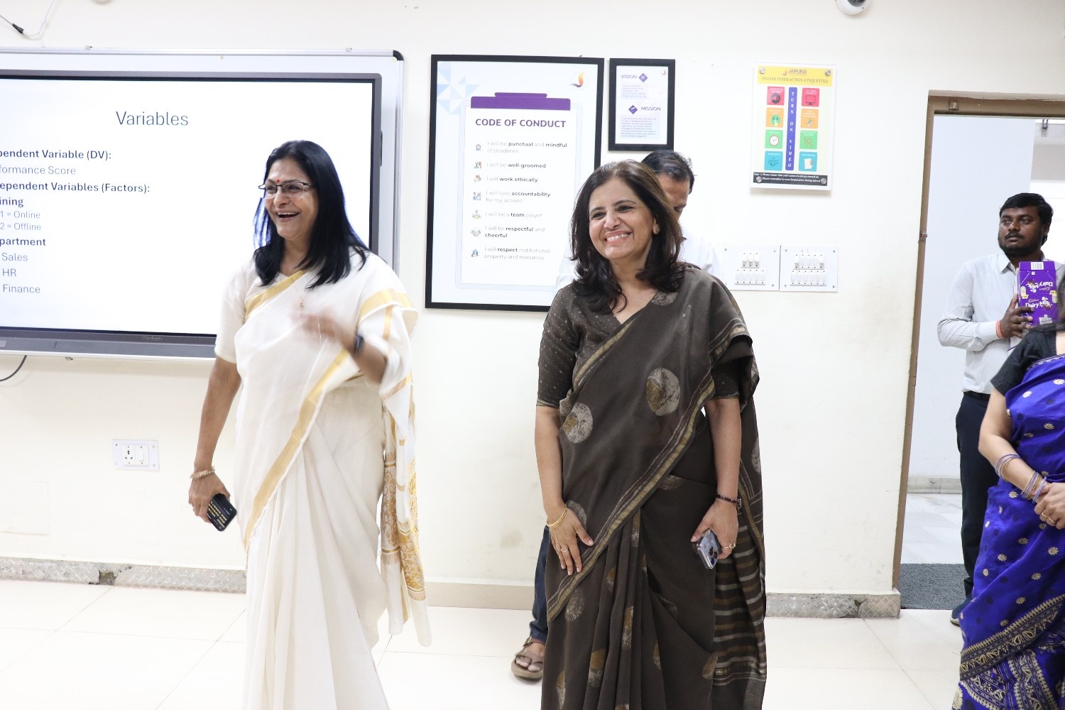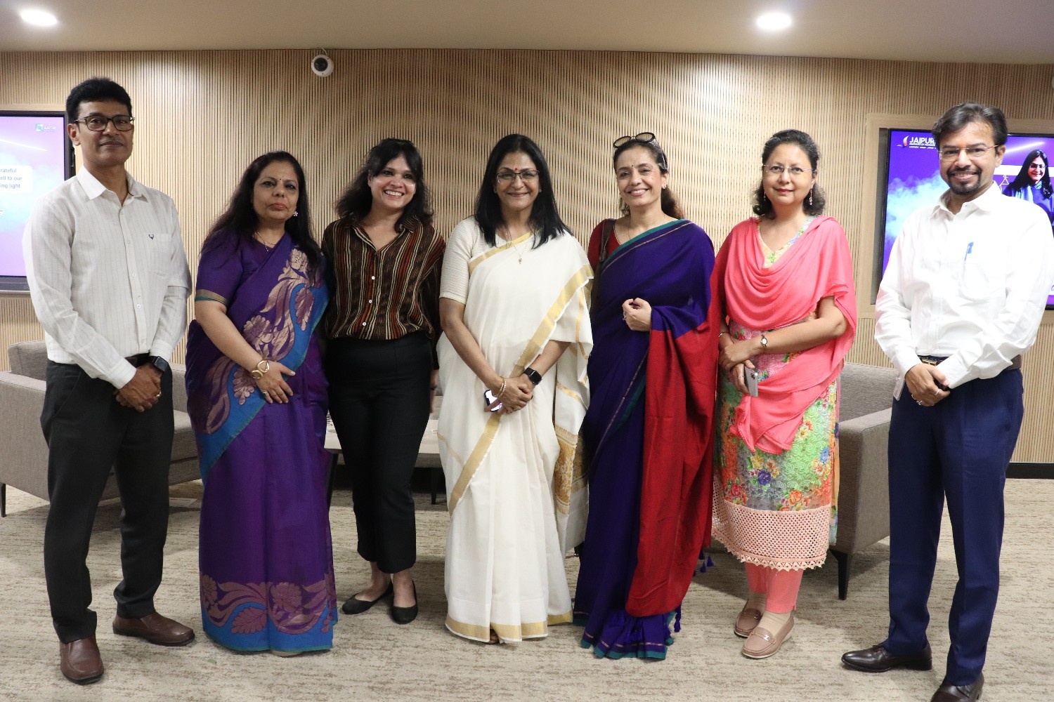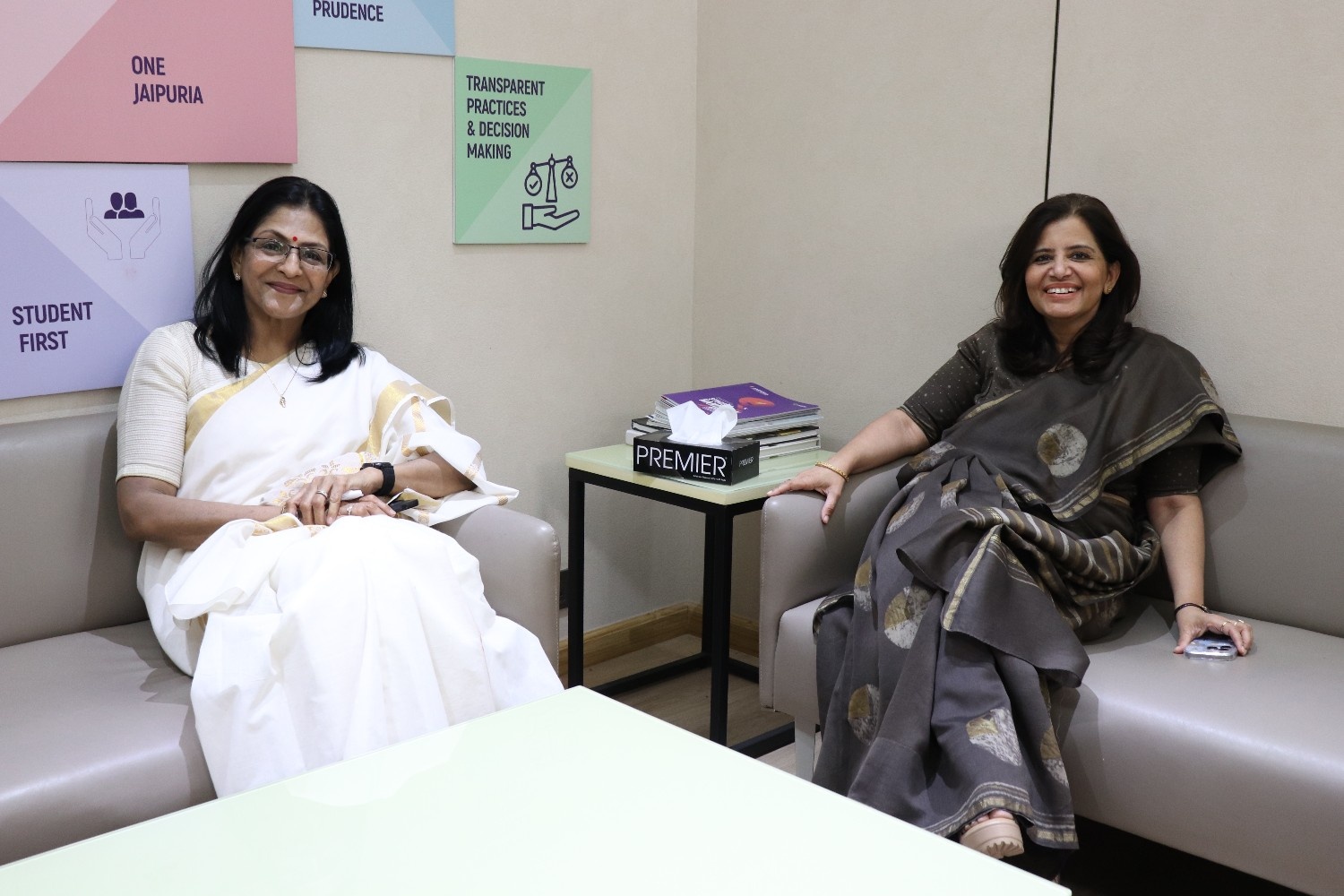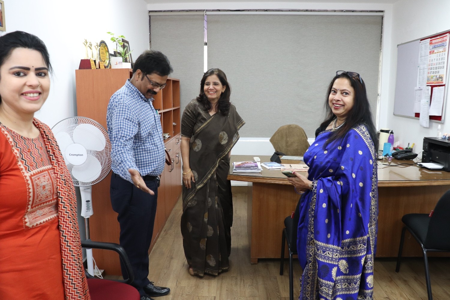 The occasion was further enlivened as faculty and staff members took turns sharing heartfelt anecdotes and experiences, painting a vivid mosaic of her impact on countless lives. The ceremony concluded with a ceremonial felicitation, where Dr. Pathak was honoured with a shawl, A warm welcome was extended to Dr. Sushma Vishnani the new Director. The atmosphere soon turned delightfully informal, as colleagues and staff gathered for photographs, each frame capturing admiration, gratitude, and a touch of nostalgia. A particularly poignant moment was witnessed as Dr. Pathak stood surrounded by her former students, now her colleagues, reflecting the enduring legacy of mentorship and excellence she leaves behind. The event concluded over high tea and conversations that lingered just a little longer, much like her enduring influence on the Jaipuria family.