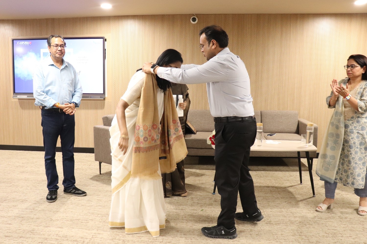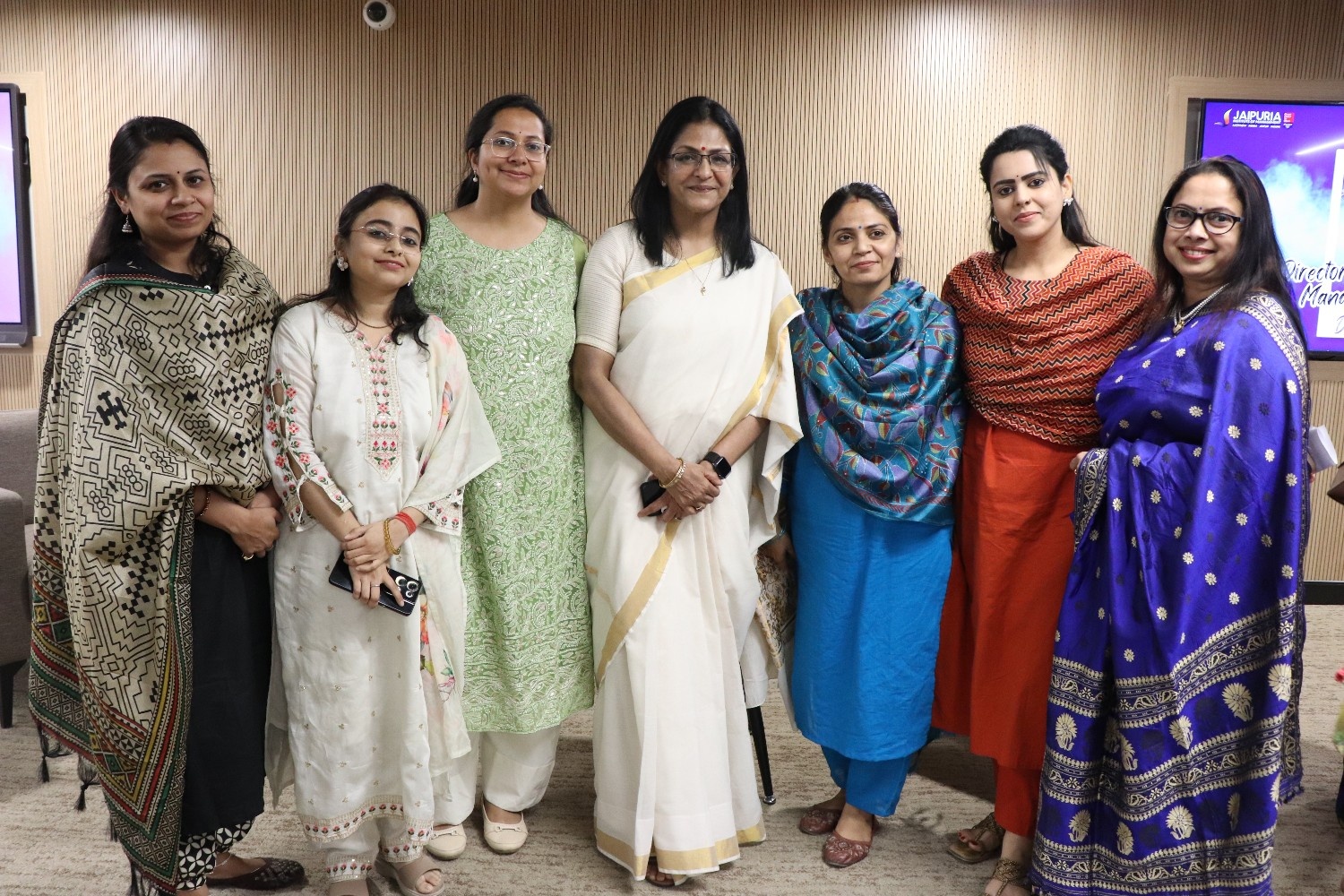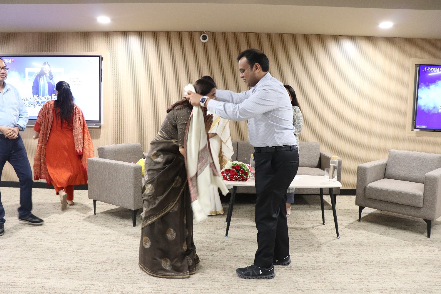 The farewell ceremony was a tribute to her remarkable contributions and was graced by Vice-Chairman Mr. Shreevats Jaipuria and Distinguished Professor Dr. V.P. Singh. The event commenced with a welcome address by Dr. Manisha Seth, who warmly welcome the dignitaries, along with outgoing Director Dr. Kavita Pathak and incoming Director Dr. Sushma Vishnani. In his address, Mr. Shreevats Jaipuria reflected on Dr. Pathak’s invaluable contributions and acknowledged the deep personal and professional learning he personally gained from her leadership. Dr. Pathak, in her address, shared reflections from her enriching journey, offering glimpses of her experiences across various roles, including her tenure as Director of both Lucknow and Noida campuses.