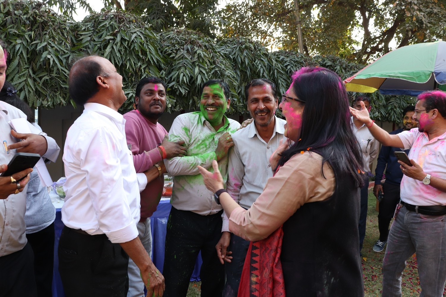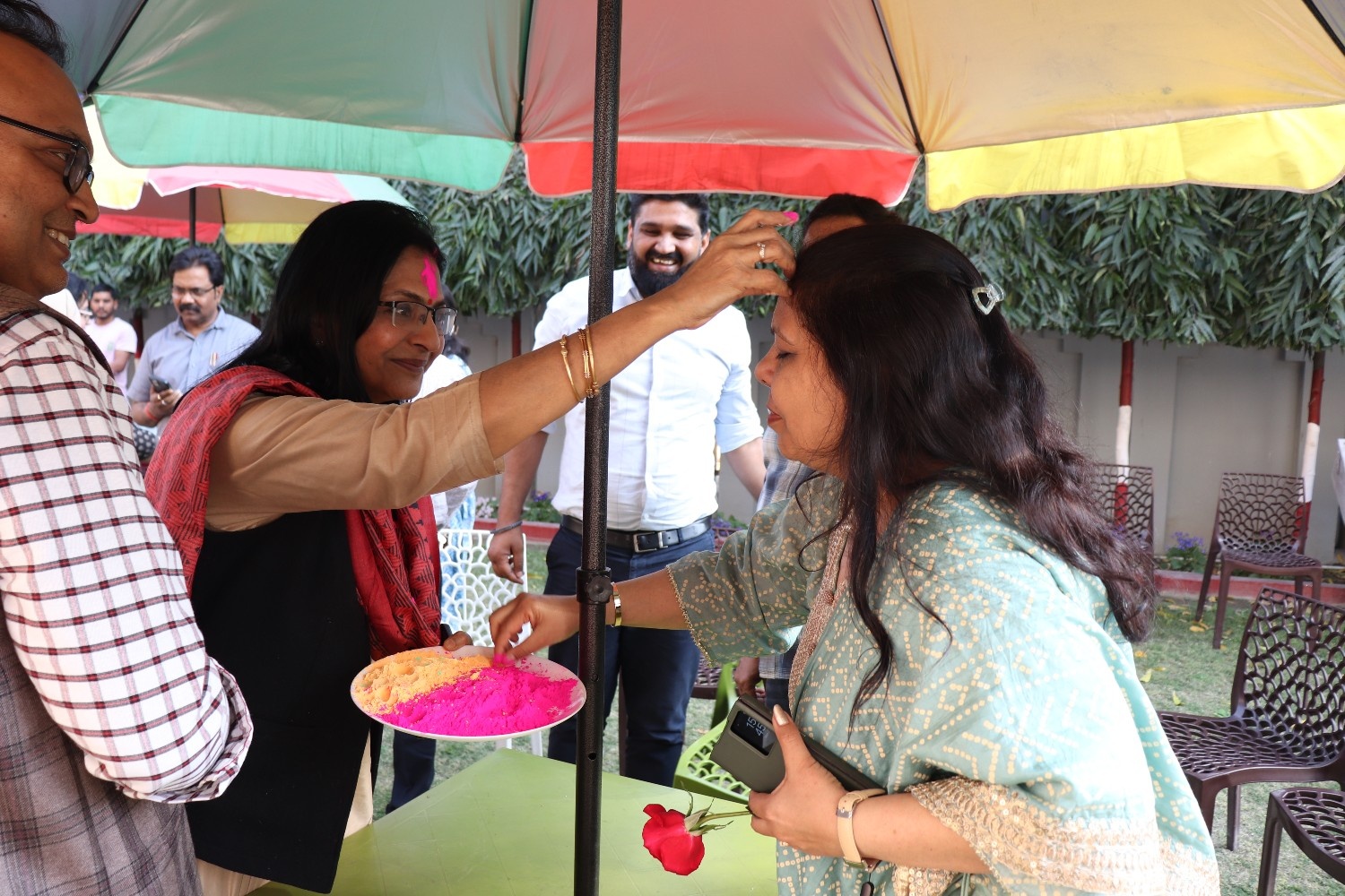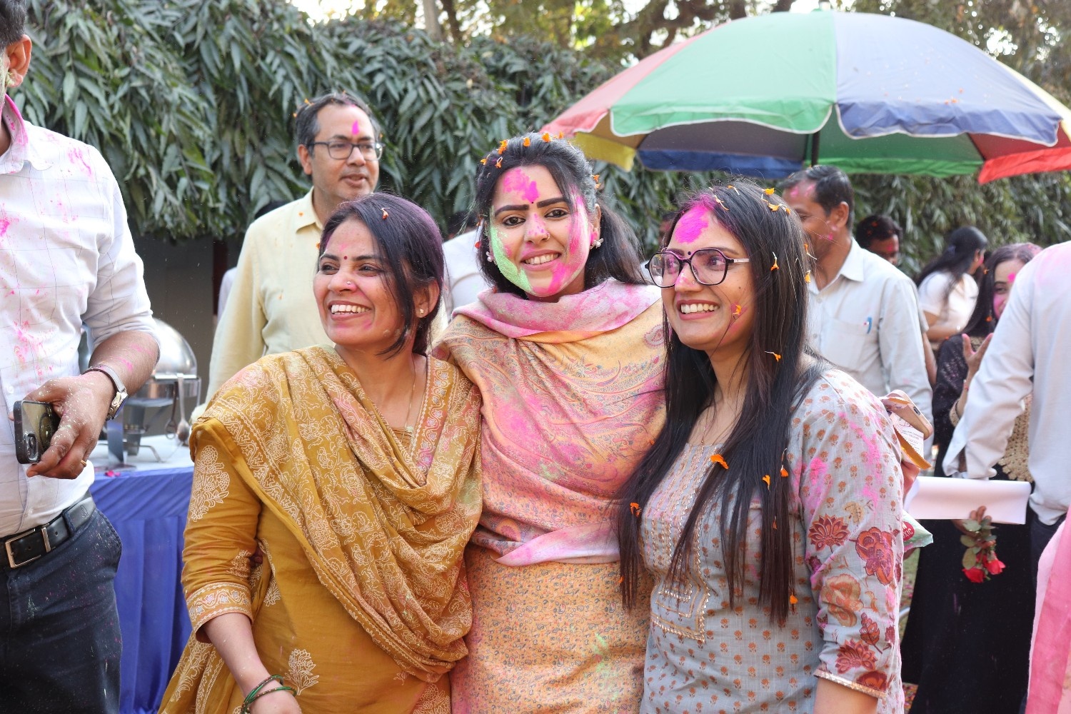 What made the celebration special was not just the hues on our faces, but the harmony in the gathering. Departments blended seamlessly, hierarchies dissolved for the day, and conversations flowed freely. Selfies were clicked, group photographs were taken under the shade of umbrellas, and joyous moments were captured that will linger far beyond the festival.