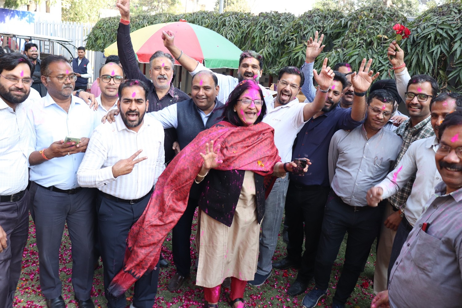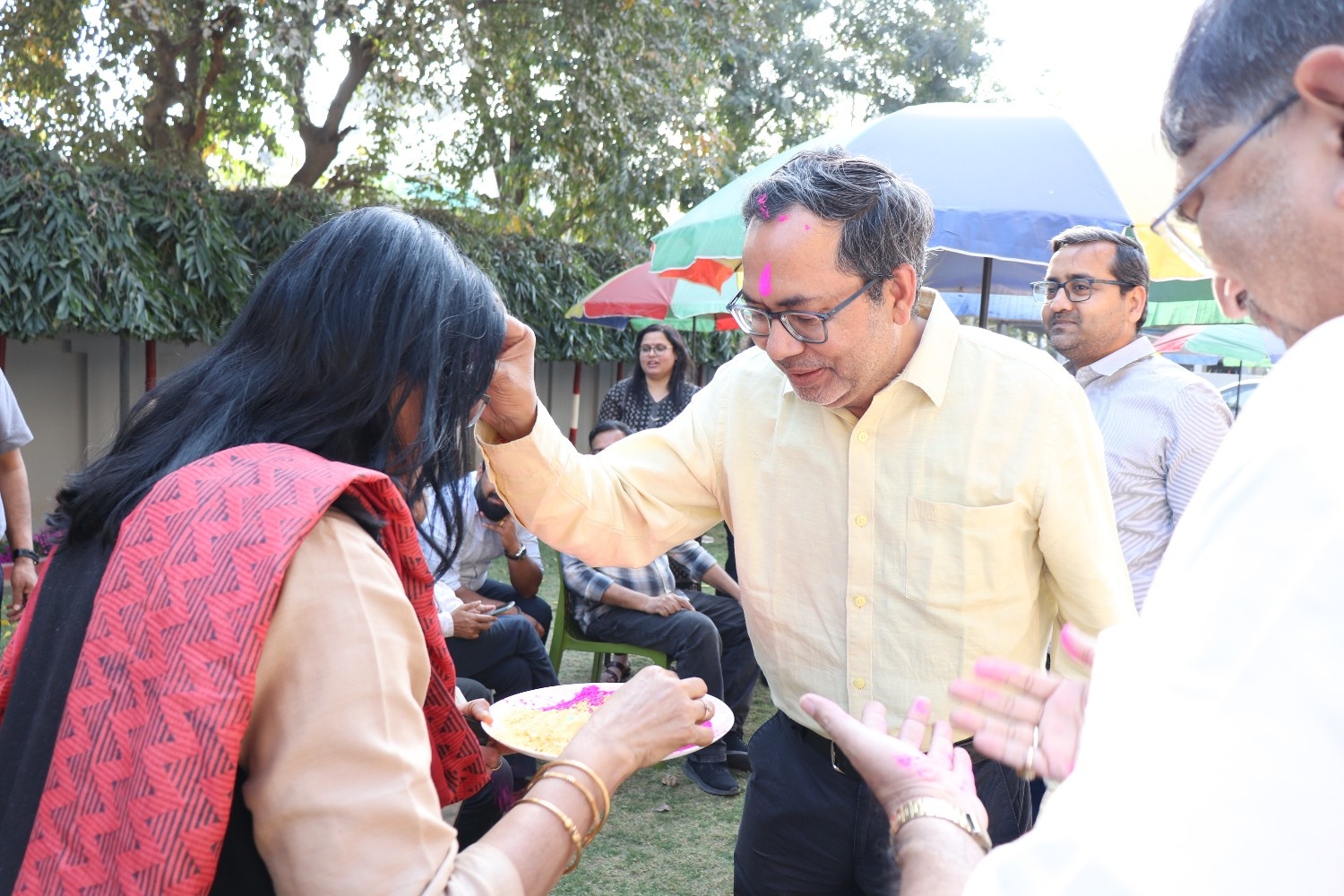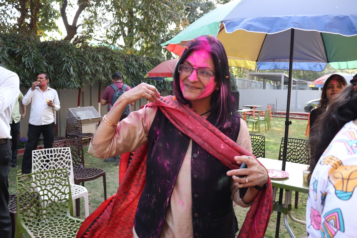 What made the celebration special was not just the hues on our faces, but the harmony in the gathering. Departments blended seamlessly, hierarchies dissolved for the day, and conversations flowed freely. Selfies were clicked, group photographs were taken under the shade of umbrellas, and joyous moments were captured that will linger far beyond the festival.