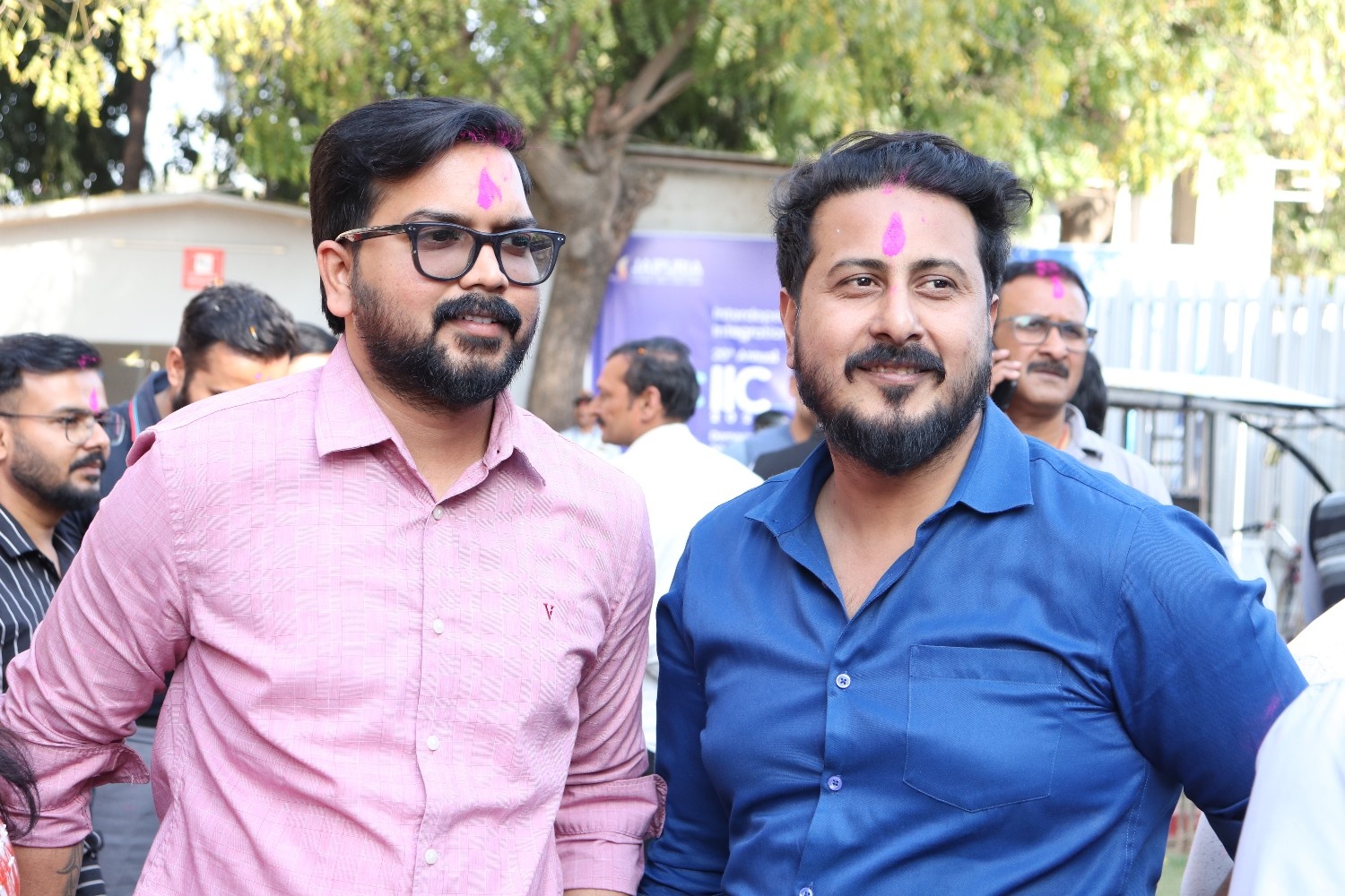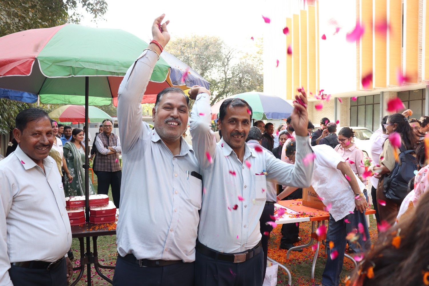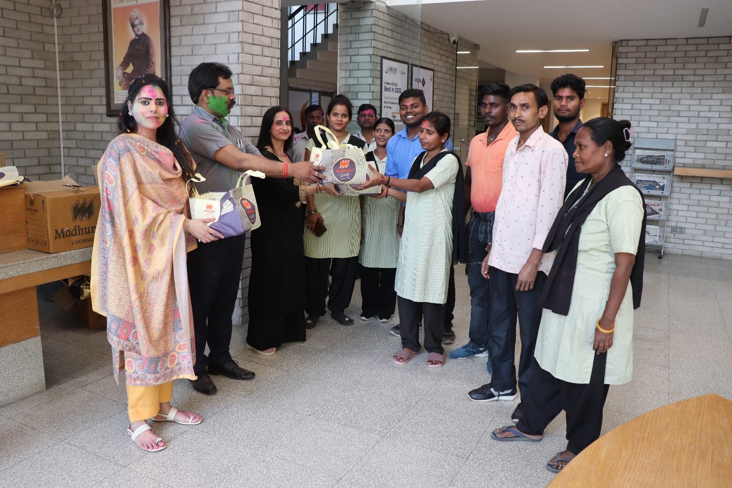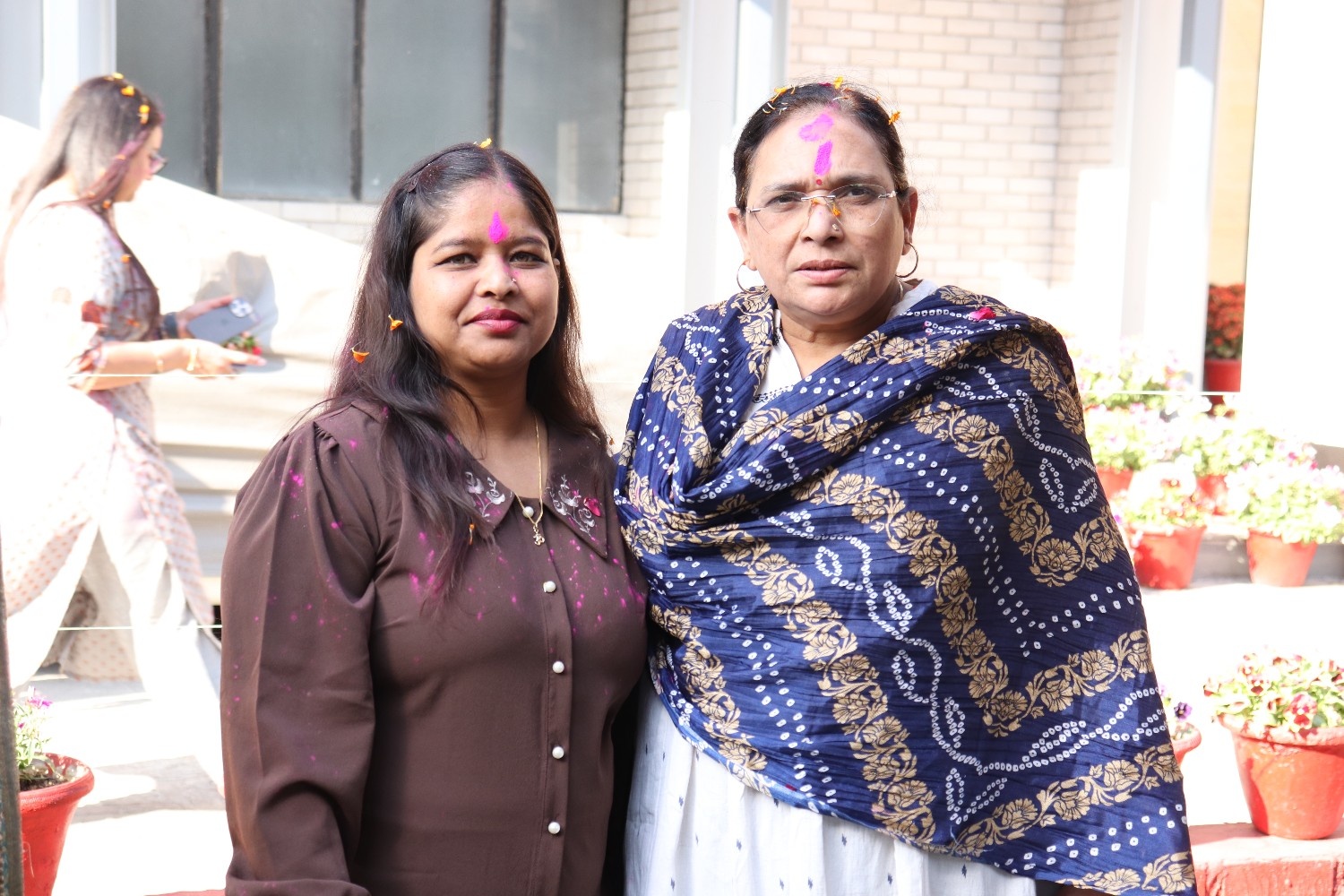 The Director, faculty members, staff, students and support staff came together not in formal roles, but as one community. The lawns, usually echoing with academic discussions and deadlines, were instead filled with cheerful greetings, playful splashes of gulal and showers of flower petals. Pink palms waved at cameras, marigold petals floated through the air, and smiles carried more color than the brightest abeer.