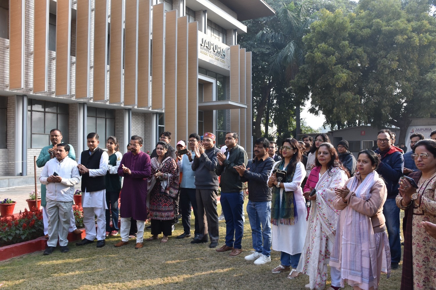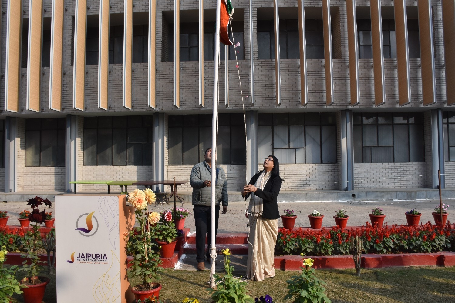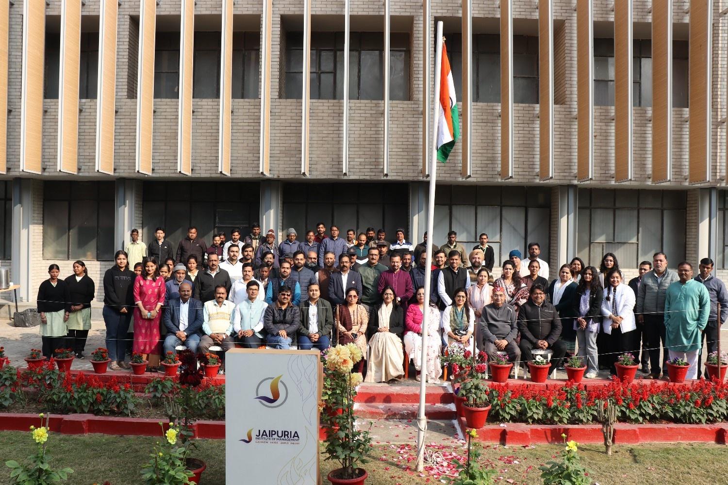 Jaipuria Institute of Management celebrated the 77th Republic Day with great pride and patriotic spirit on campus. Republic Day holds a special place in Indian history as it marks the adoption of the Constitution of India on 26 January 1950, transforming the nation into a sovereign democratic republic. The day stands as a tribute to the vision, wisdom, and perseverance of the Constitution’s framers, reminding citizens that freedom is sustained not only by rights but also by responsibilities.