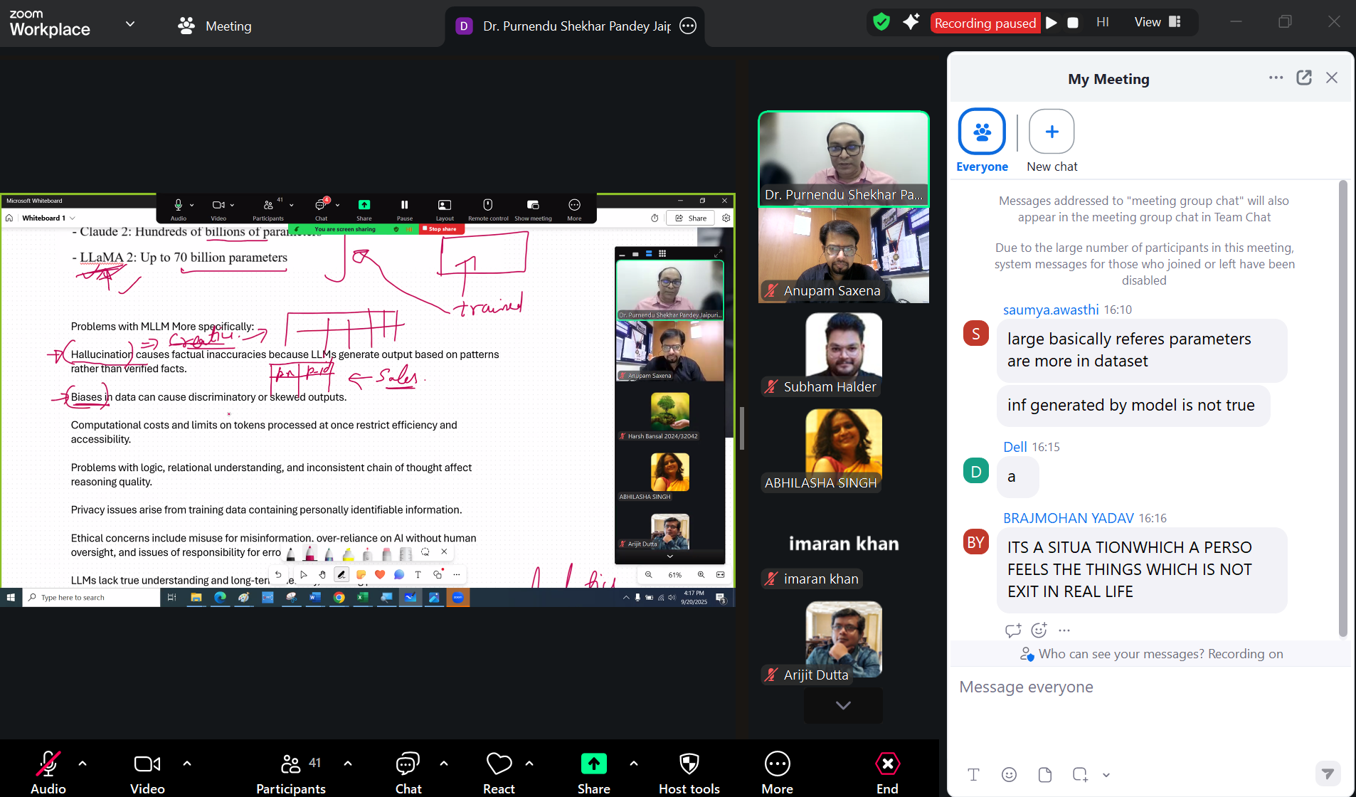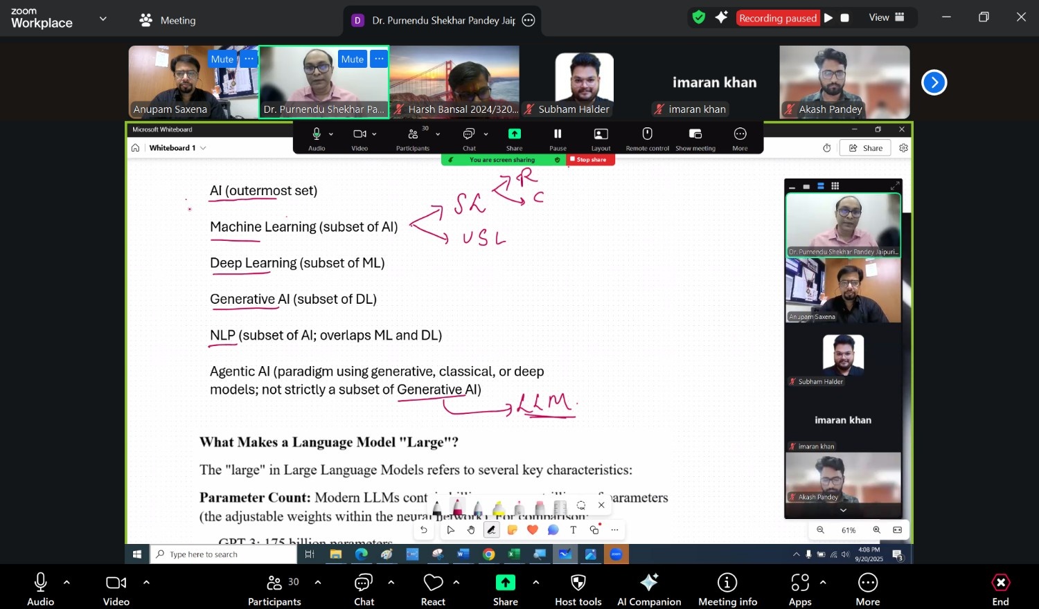 Dr. Purnendu delivered an insightful presentation covering the hierarchy of AI, from machine learning and deep learning to generative AI. He explained the role of Large Language Models (LLMs) in data analytics, their training methods, and challenges such as hallucinations in responses. He also highlighted the evolution of LLMs from natural language processing to multimodal models capable of analyzing text, images, audio, and video.